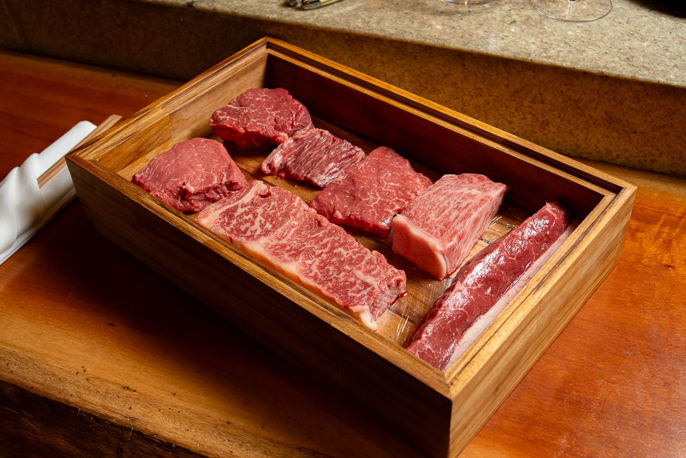Inspirado no menu confiança japonês, o jantar apresenta cerca de 15 etapas, nas quais o chef conduz uma imersão na história e nas técnicas do churrasco contemporâneo, bem como cortes altamente selecionados.