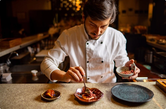 O Chef Fabio Lazzarini eleva experiência da carne a outro patamar com seu inédito Omakase da carne. Inspirado na tradição japonesa do “menu confiança”, o Omakase é uma imersão na história do churrasco, servido no balcão do Chef para apenas 6 pessoas por noite. Uma jornada gastronômica exclusiva para os grandes apreciadores de carne.